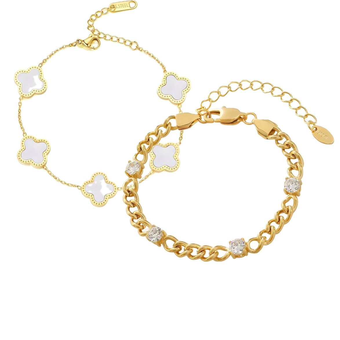 18K GOLD PLATED STAINLESS STEEL “FOUR-LEAF CLOVER” BRACELET & 18K GOLD PLATED STAINLESS STEEL BRACELET.
