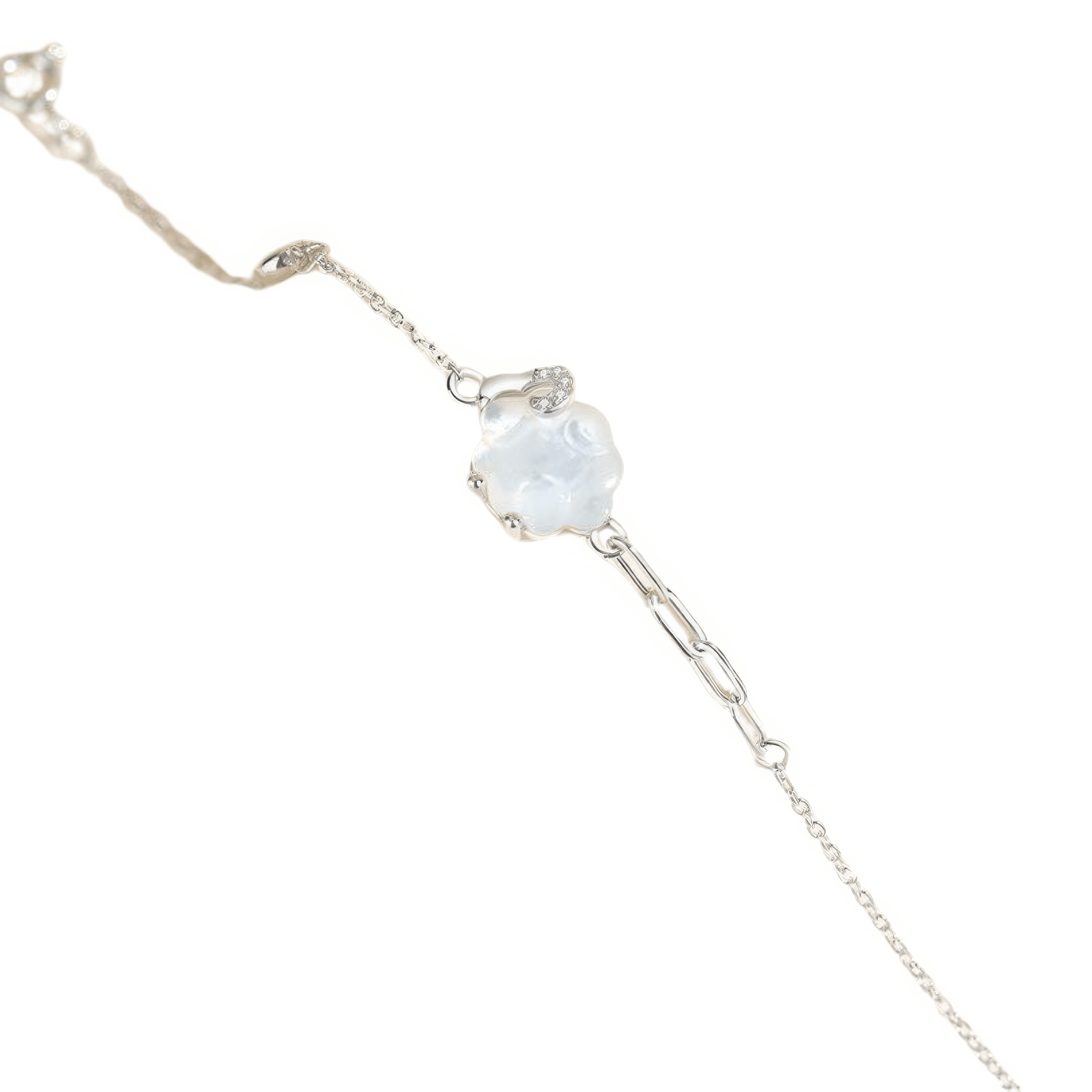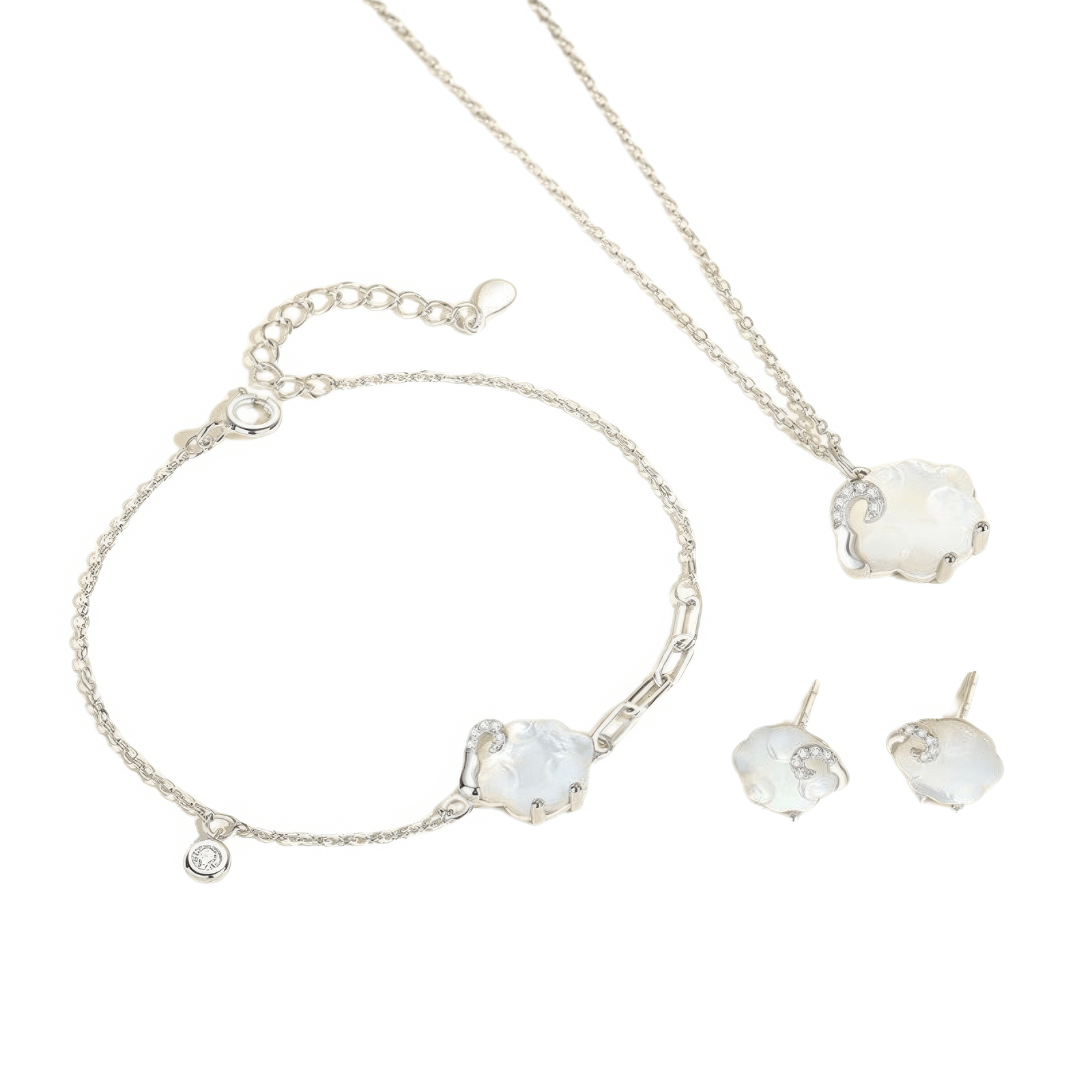 A delicate jewelry set in 925 silver featuring a necklace, bracelets, and earrings. Inspired by the natural beauty of the Olympus Flower, this set stands out with its elegant design and refined details to complement any style.