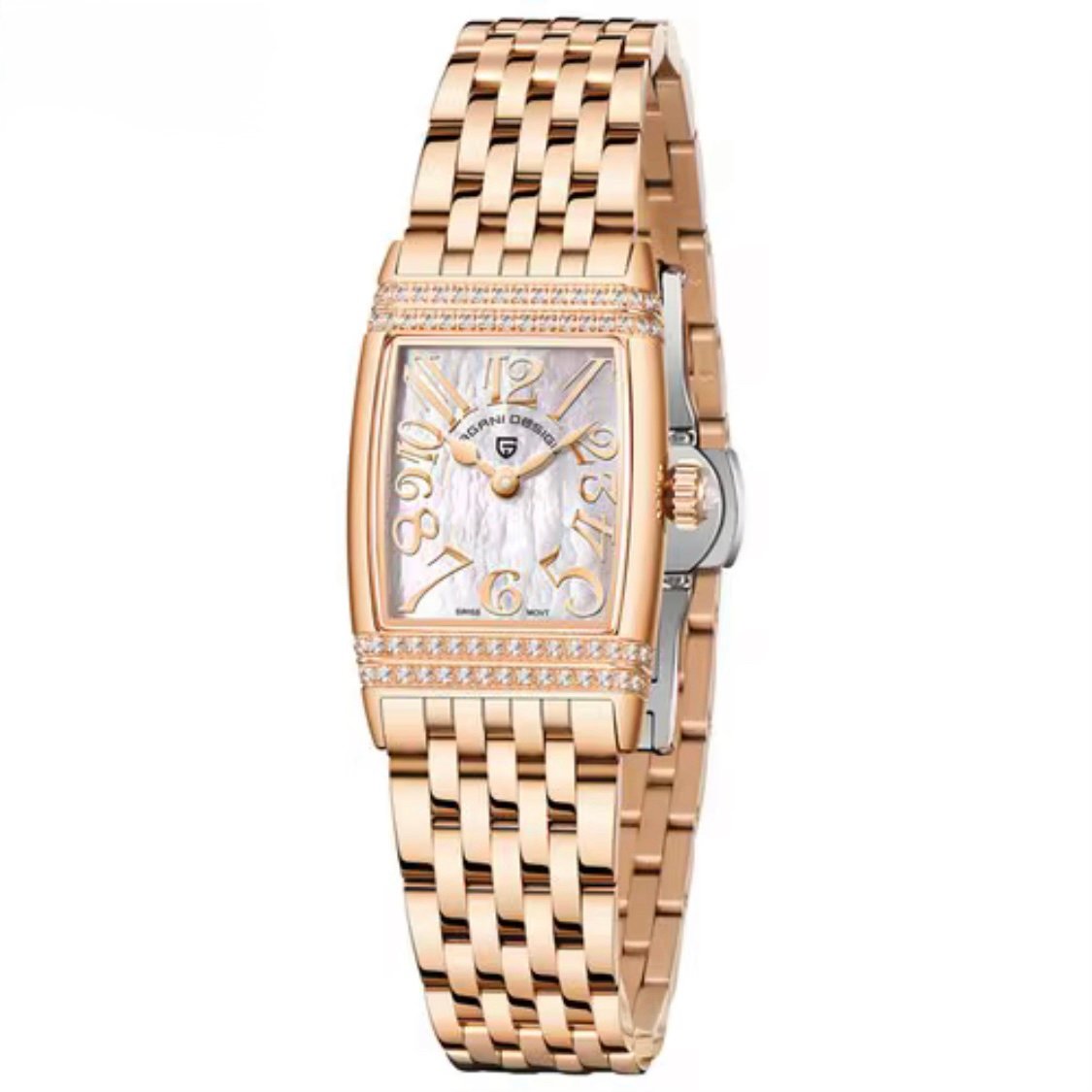 Reloj elegante Vintage con cristal en zafiro y piedras en cuarzo para mujer, resistente al aguas y con movimiento suizo.