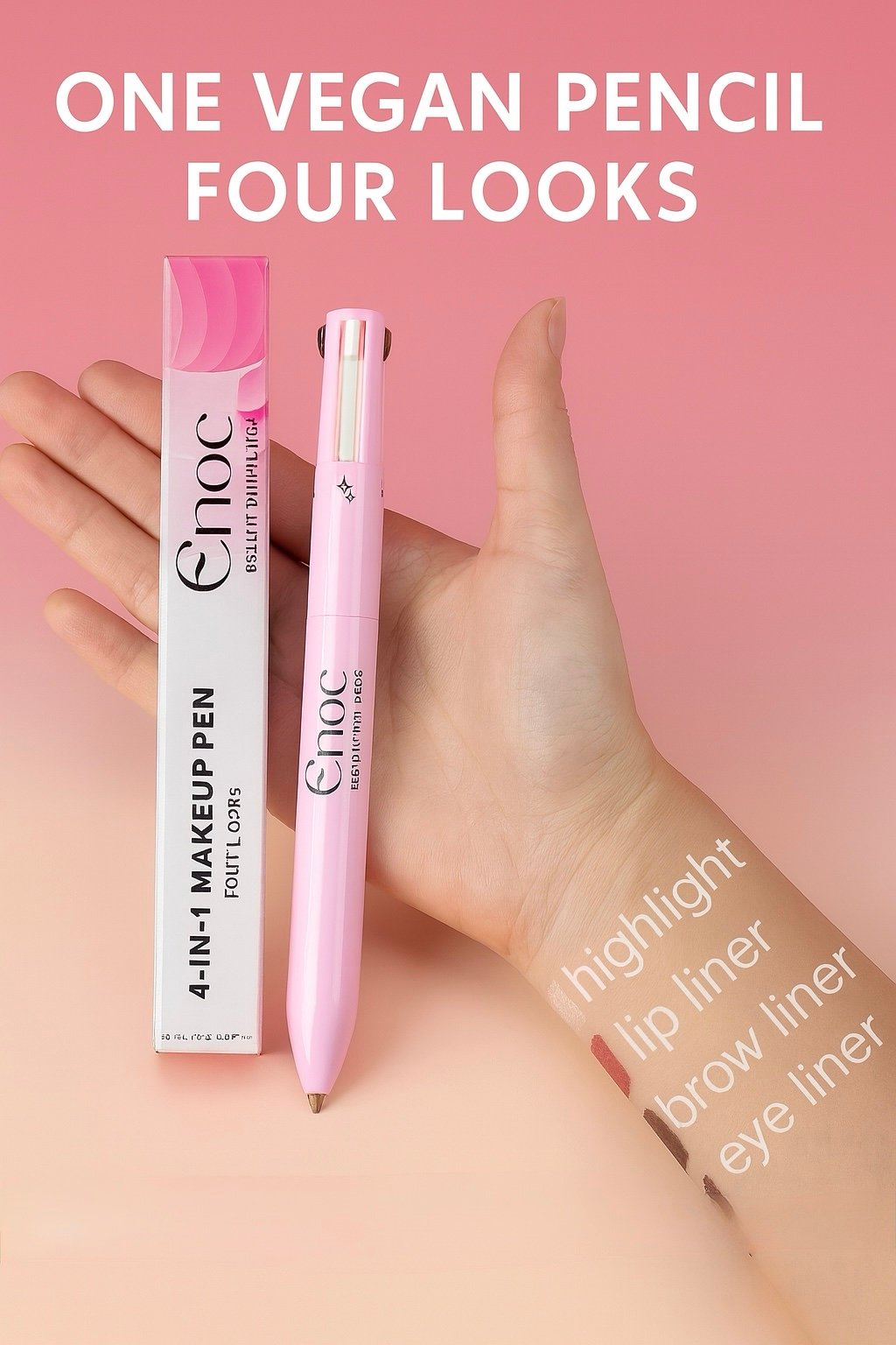 Enoc 4-IN-1 Makeup Pen, lleva contigo delineador de ojos, delineador de labios, sombreador de cejas e iluminador… ¡todo en un solo lápiz!
